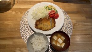 本日は、シソ バジルトンカツ、マカロニサラダ、豆腐の味噌汁、以上です。